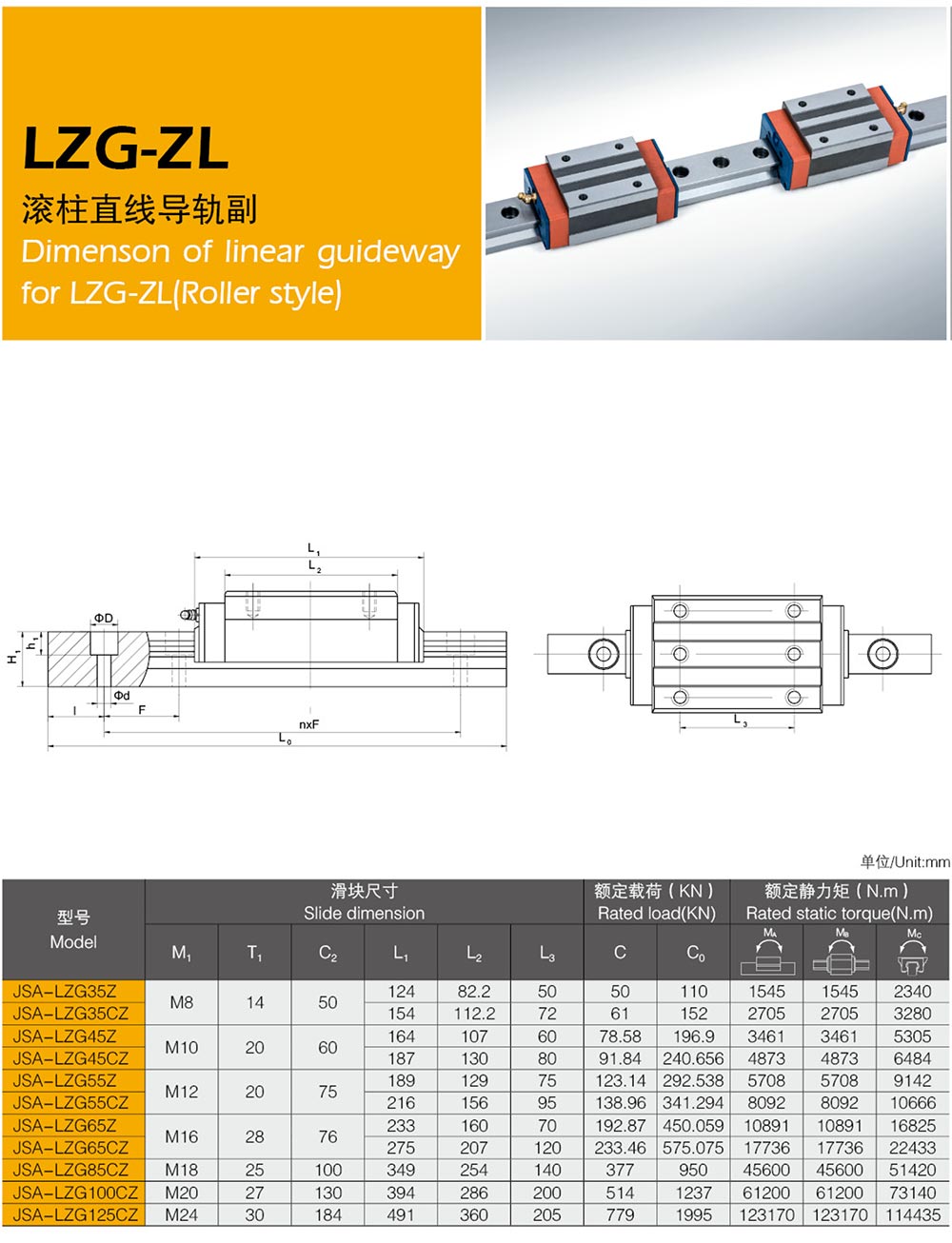 LZG型滚柱直线导轨副
